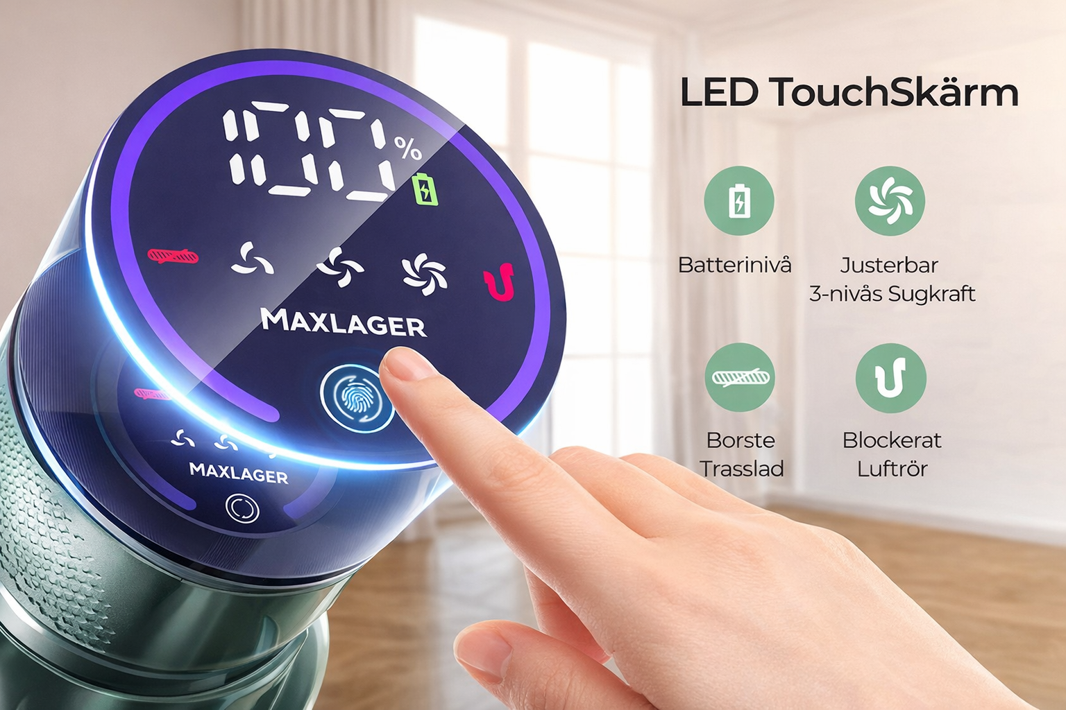 Maxlager V7 Pro är vår early release för 2026, en sladdlös skaftdammsugare byggd för dig som vill ha maximal städkraft på både hårda golv och mattor, med smarta funktioner som gör vardagen enklare. Den kombinerar hög prestanda, lång batteritid, självgående fristående parkering och en modern touchskärm med tydlig status i realtid.